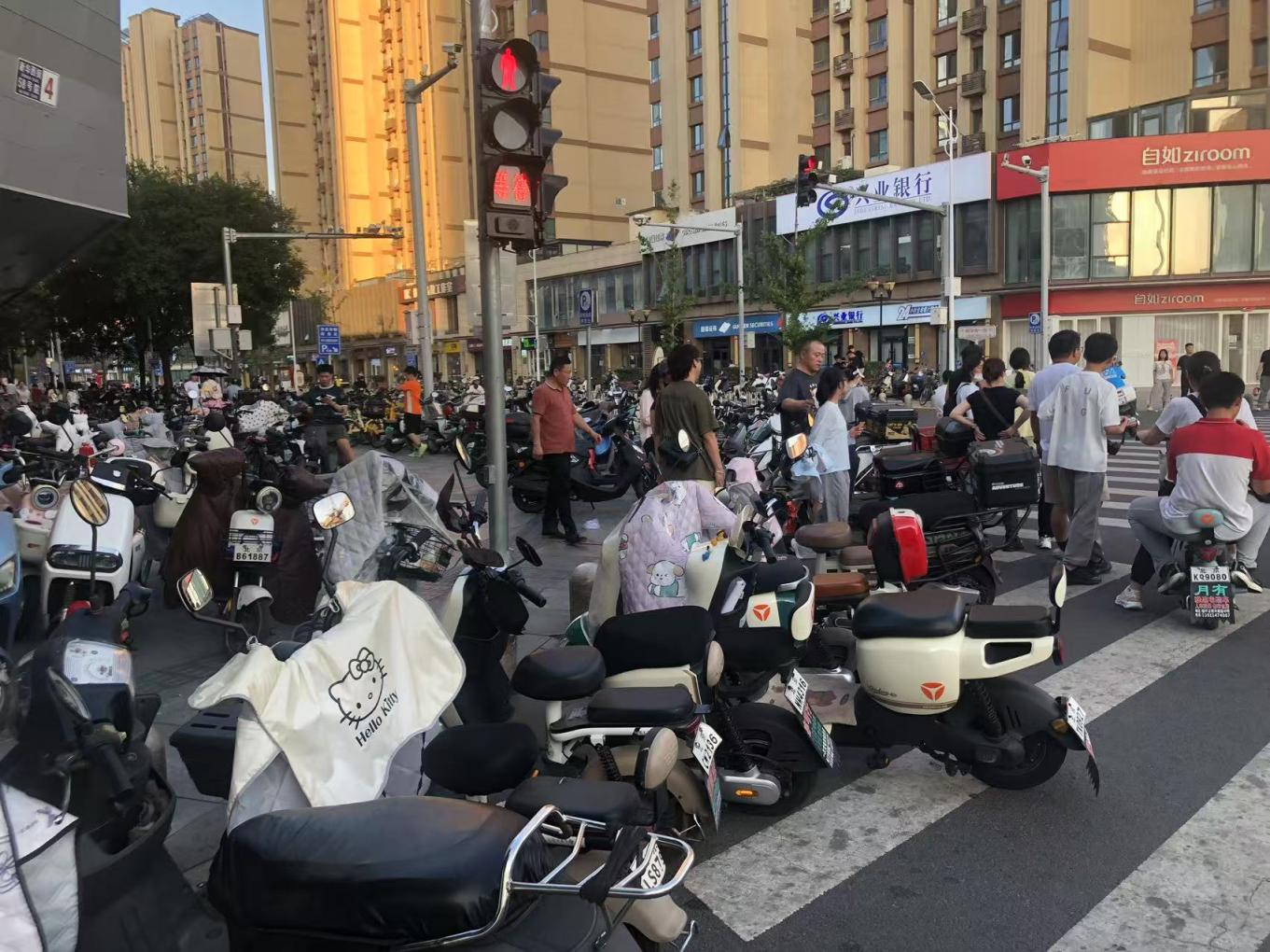 梳理市民投诉,在各商圈有关非机动车停放的问题上,外卖电动车被投诉的比例是最高的,但记者现场探访时发现,从违停的车辆总数上看,外卖电动车往往并不是最多的。