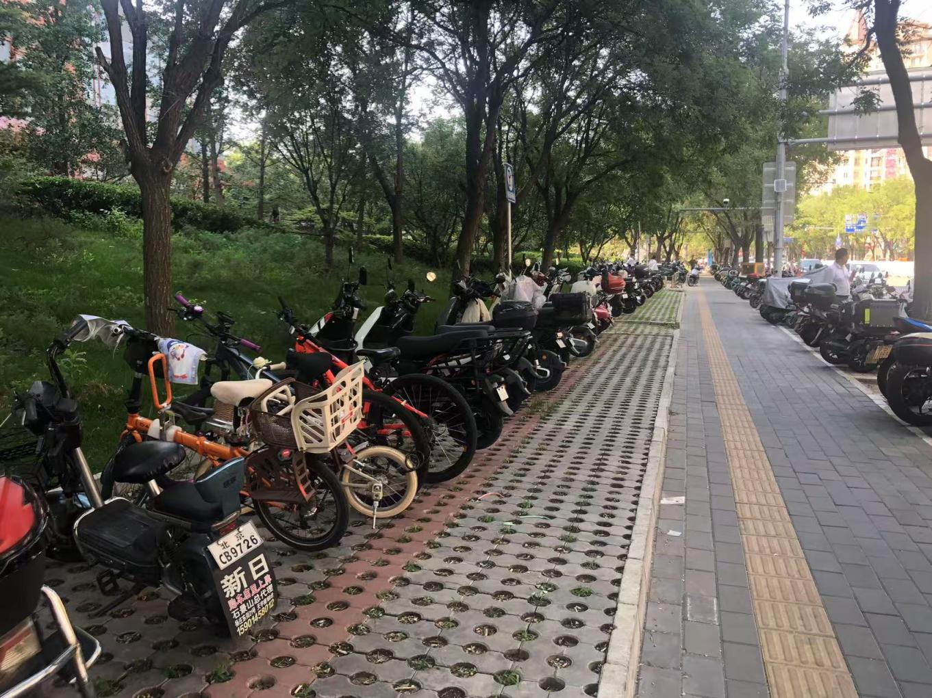 6月22日,记者来到朝阳大悦城。放眼望去,非机动车仍然不少,细看发现,和以往不同的是,各类车辆不再占道停放,对行人的影响减小了。随着广场周边的一些闲置区域被划为临时停车区,青年路、四季星河西路的便道也变清爽了。