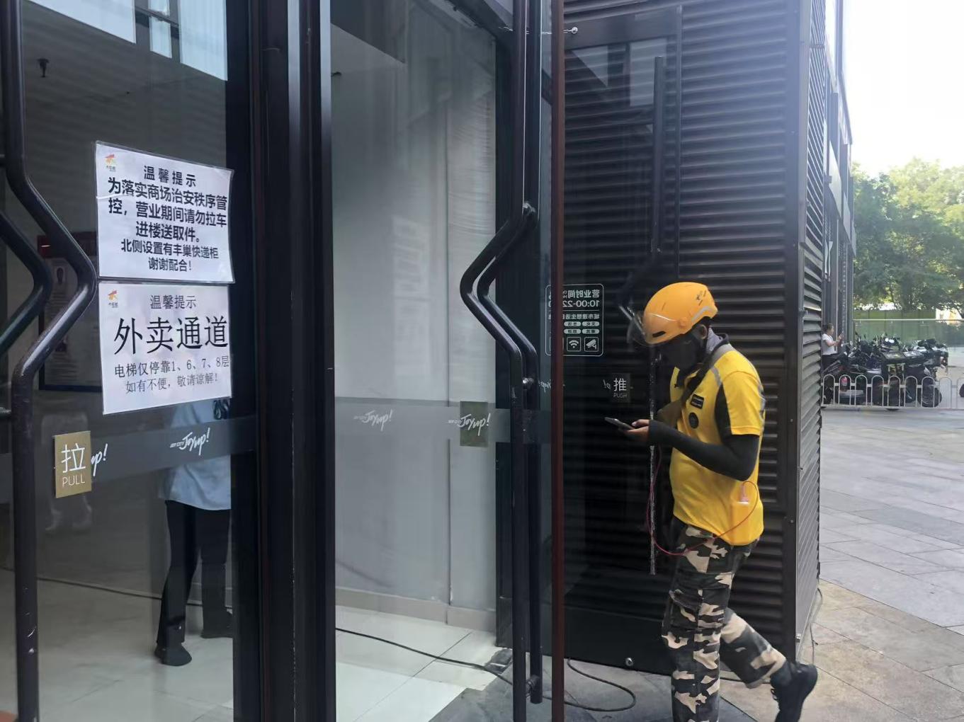 朝阳大悦城为外卖骑手设置了专用通道,方便他们快速取餐。