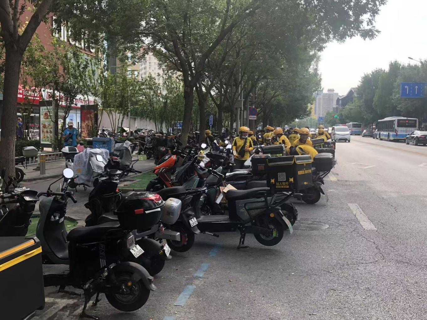 记者近日走访了京城多个商圈,向超过50名外卖骑手询问了停车的具体需求,几乎每个人都提到“给车找个有阴凉且合规停放的地方”。因为很难找到这样一个地儿,他们只能骑在车上“打游击”,见管理员来了就把车挪走,太阳晒了、下雨了也得随时换地方。有外卖骑手感觉挺委屈:“商圈周边停车乱,只有我们被管,可其实那些乱放的共享单车、普通的电动车,总量并不比外卖电动车少。”